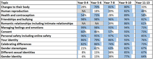 Finding 7: Most students agree that they are taught the right amount of most RSE topics and at the right age, though some topics arenât being delivered at the right time to meet studentsâ needs.