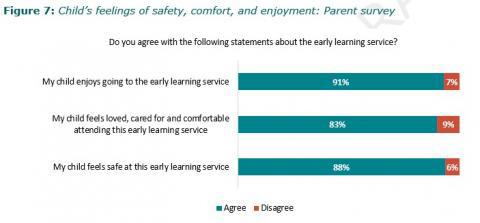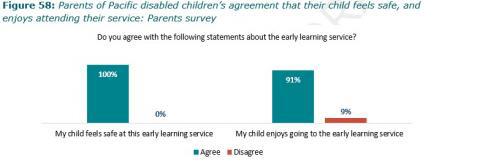 Figure 58: Parents of Pacific disabled childrenâs agreement that their child feels safe, and enjoys attending their service: Parents survey