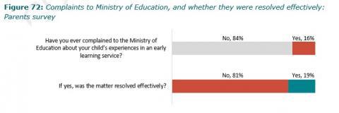 Figure 72: Complaints to Ministry of Education, and whether they were resolved effectively: Parents survey