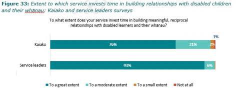Figure 33: Extent to which service invests time in building relationships with disabled children and their whÄnau: Kaiako and service leaders surveys