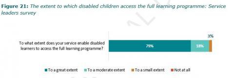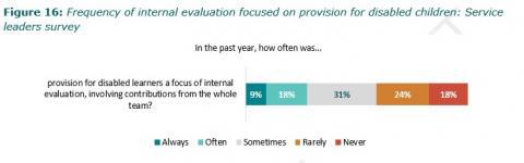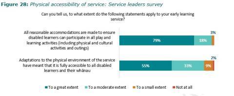 - Services need to have a better understanding of how well disabled children are progressing, and how good their provision is. Many services do not have good information about how well they are providing for disabled children, and many lack focus on this important group. Forty-one percent of leaders reported provision for disabled children is rarely or never a focus of internal evaluation. We also found that service leaders are much more positive about the quality of provision for disabled children than parents/whÄnau or kaiako, further highlighting the lack of clarity on quality of provision.
