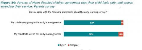Figure 50: Parents of MÄori disabled children agreement that their child feels safe, and enjoys attending their service: Parents survey