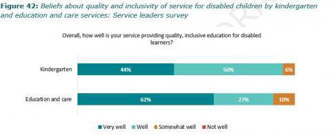 Figure 42: Beliefs about quality and inclusivity of service for disabled children by kindergarten and education and care services: Service leaders survey
