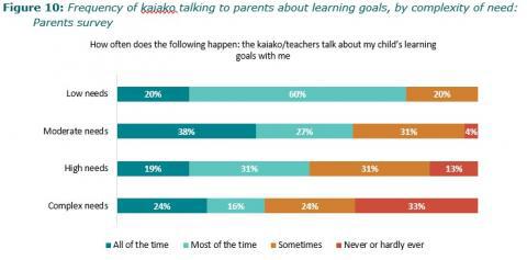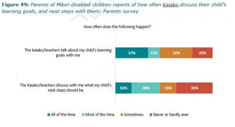 Figure 49: Parents of MÄori disabled childrenâs reports of how often Kaiako discuss their childâs learning goals, and next steps with them: Parents survey