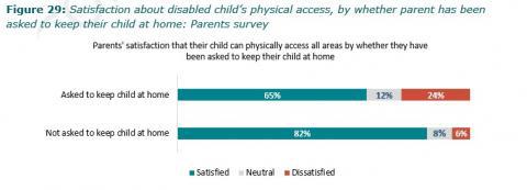 Figure 29: Satisfaction about disabled childâs physical access, by whether parent has been asked to keep their child at home: Parents survey