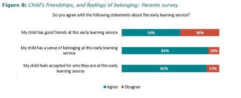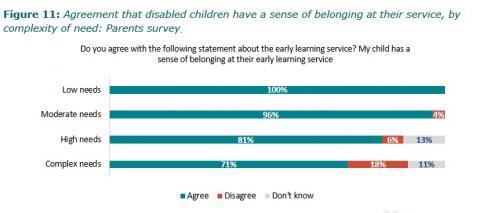 Disabled children enjoy ECE, feel safe and that they belong. We found disabled children are participating and enjoying ECE. Most parents and whÄnau believe their child feels loved and cared for, and that they belong at their service.