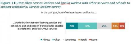 Figure 71: How often service leaders and kaiako worked with other services and schools to support transitions: Service leaders survey