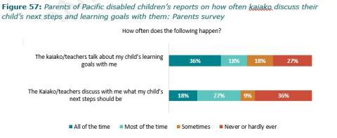 Figure 57: Parents of Pacific disabled childrenâs reports on how often kaiako discuss their childâs next steps and learning goals with them: Parents survey