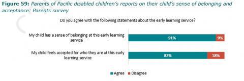 Figure 59: Parents of Pacific disabled childrenâs reports on their childâs sense of belonging and acceptance: Parents survey