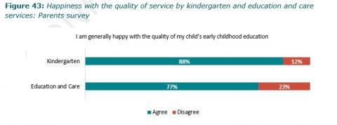 Figure 43: Happiness with the quality of service by kindergarten and education and care services: Parents survey