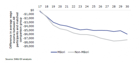 Figure 33:Â Income from wages: MÄori and non-MÄori