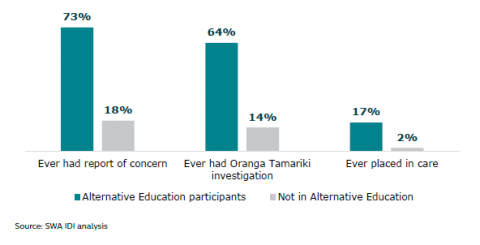 Figure 6:Â Involvement with Oranga Tamariki: Alternative Education participants and young people young people not in Alternative Education