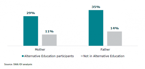 Figure 8:Â Parents without qualifications: Alternative Education participants and young people not in Alternative Education