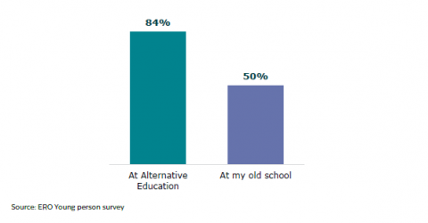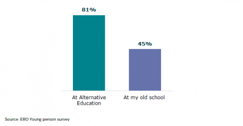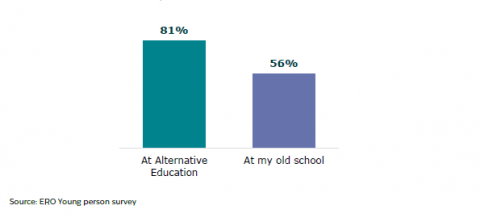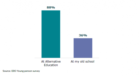 Figure 17:Â Young people who have an educator they like at Alternative Education compared to their old school