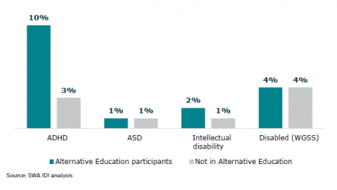 Figure 4:Â Disabilities: Alternative Education participants, and the general population