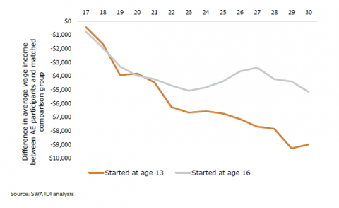 Figure 37:Â Income from wages: Started Alternative Education at age 13 and age 16