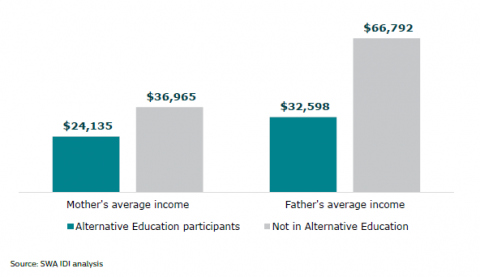 Figure 7:Â Parents' average income: Alternative Education participants and young people not in Alternative Education