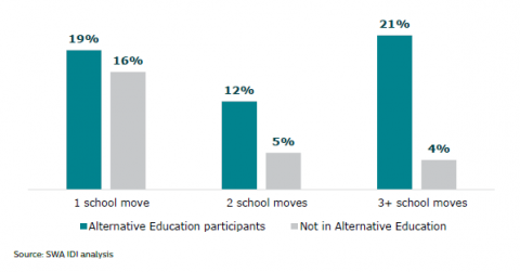 Figure 9:Â School moves: Alternative Education participants and young people not in Alternative Education