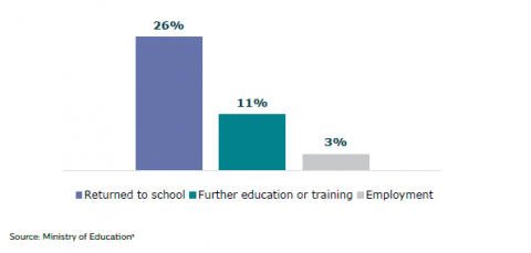 Figure 22:Â Percentage of Alternative Education participants who first attended in 2019 and went on to successful outcomes immediately after Alternative Education