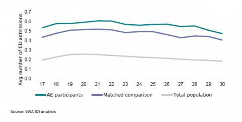 Figure 31:Â Average number of Emergency Department admissions, by age