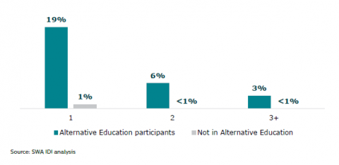 Figure 12:Â Suspensions or exclusions: Alternative Education participants and young people not in Alternative Education