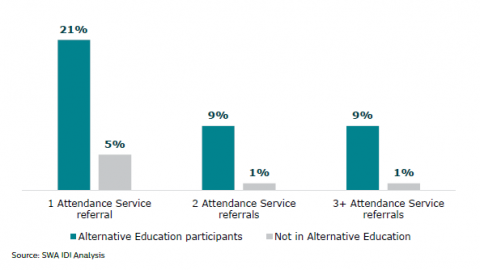 Figure 13:Â Number of Attendance Service referrals: Alternative Education participants and young people not in Alternative Education