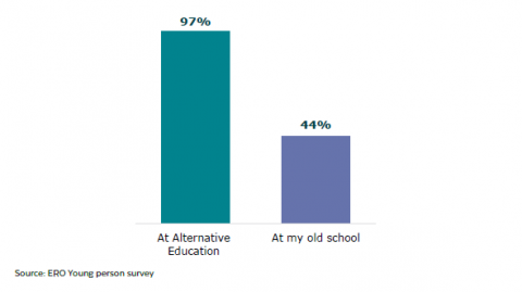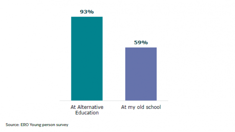 Figure 21:Â Young people who agree their work is the right level for them at Alternative Education compared to at their old school