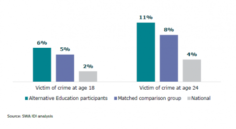 Figure 29:Â Victim of a crime: Alternative Education participants, matched comparison group and national figures