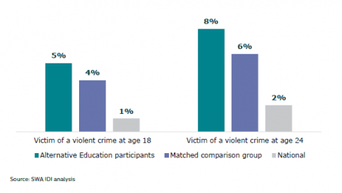 Figure 30:Â Victim of a violent crime: Alternative Education participants, matched comparison group and national figures