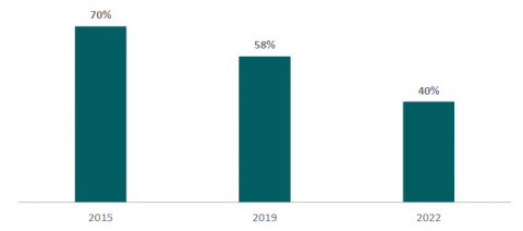 Figure 2: Percentage of learners regularly attending in 2015, 2019, and 2022