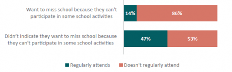 Parents who would keep their child out of school because their child isnât able to participate in certain activities are 22 percentage points more likely to have a child that doesnât attend school regularly (57 percent compared to 35 percent).