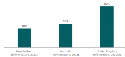 Figure one is a graph comparing the regular attendance rates for New Zealand, Australia and the United Kingdom. Regular attendance is defined as attending more than ninety percent of the time.