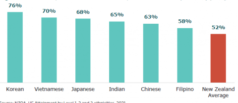 - New Zealand Qualifications Authority (2022). NCEA Attainment by Level 1, 2 and 3 ethnicities, 2021 [custom data request], 1 November, 2022
