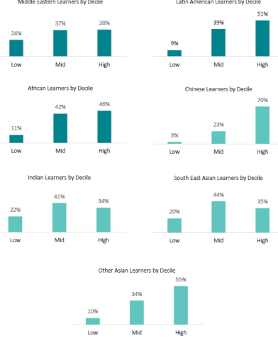 The term 'ethnic' refers to people who identify their ethnicity as Middle Eastern, Latin American, Continental European, Asian or African. Due to the responses to our surveys, and the data available, we do not include Continental European learnersâ experiences in this report.