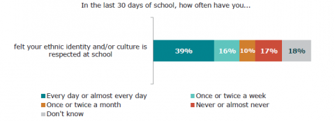 One in five learners from ethnic communities have experienced racist bullying in the last month, and over half have seen others being bullied because of their ethnicity. Both whÄnau and learners report that racist bullying needs to be better identified and addressed at school. Nearly a third of learners from ethnic communities do not think their school takes racist bullying seriously.