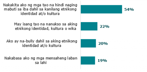 Halos isa sa limang mag-aaral mula sa mga etnikong komunidad ang nagsabi na madalas nilang nadarama na hindi sila kabilang at ang sangkatlo ay nakadarama ng kalungkutan sa paaralan linggo-linggo o araw-araw. Halos isa sa lima ay nakadama rin na kailangan nilang itago ang kanilang etnikong identidad sa paaralan, o nakadama na hindi sila isinali sa mga aktibidad dahil sa kanilang etnikong identidad. Ang mga mag-aaral na MELAA, lalo na, ay may mababang kagalingan.