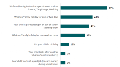 - have whÄnau, family, cultural, or special events during school time (17 percent)