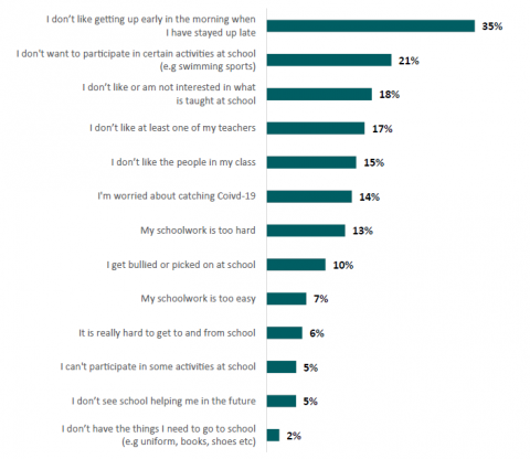 - for over a third of learners (35 percent), not liking getting up in the morning/being tired is a barrier for them attending schoolÂ