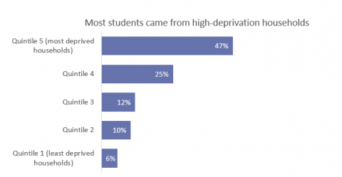 As Targeted Dual Tuition only ran for Term 4 of 2020, students that required a small number of credits to reach their NCEA goals were identified as the intended target.