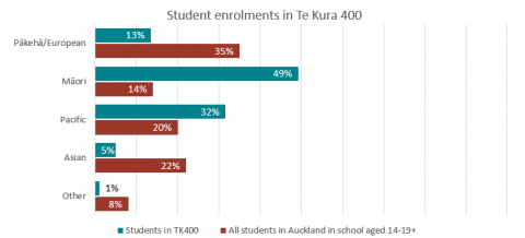 Te Kura 400 (TK400) was modelled off the Te Kura âBig Pictureâ programme, though TK400 was funded at a much higher level. The high level of funding allocated to this programme meant that all students were provided with their own device as part of enrolment. It also enabled Te Kura to hire more staff to support students.