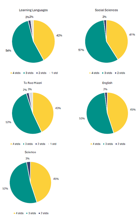 Learning areas are the eight areas set out in the New Zealand Curriculum: Arts, English, Health and Physical Education, Learning Languages, Mathematics and Statistics, Science, Social Sciences and Technology. The eight learning areas break down into 32 subjects that are covered by NCEA Level 1.
