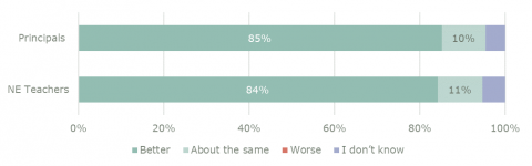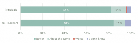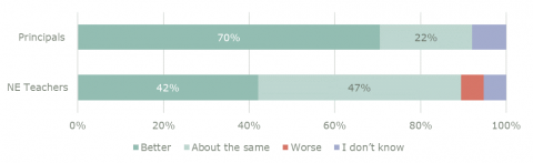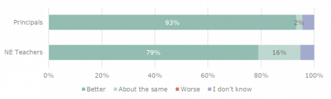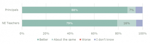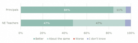 The new entrant teacher sample for this report is not of sufficient size to be a reliable indicator of the opinions of all new entrant teachers. These statistics should be read accordingly.