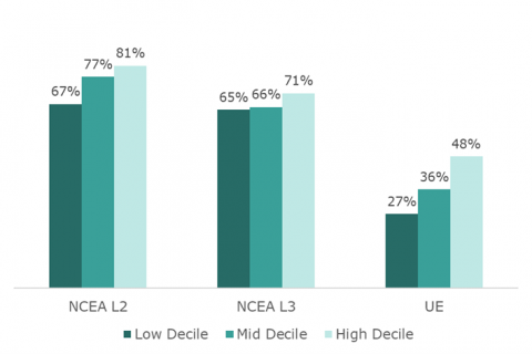 For learners in Auckland, Northland and parts of Waikato UE requirements were reduced from 14 to 12 NCEA credits in three UE-approved subjects.