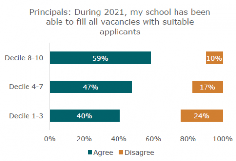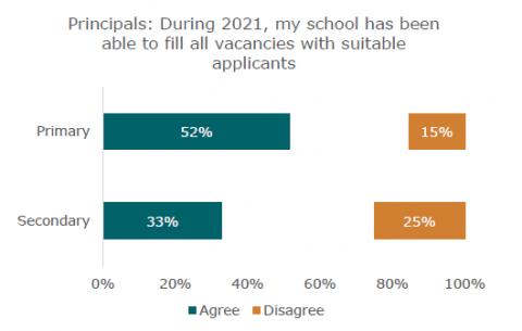We also saw that principals of secondary schools had a more challenging time filling vacancies than primary school principals. Only a third of secondary school principals agreed they had been able to fill vacancies, compared to over half of primary school principals.