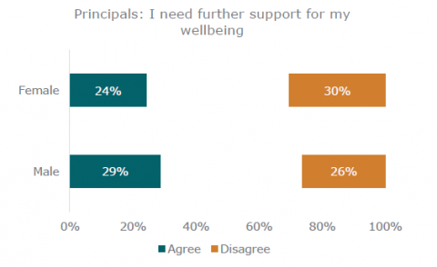 Concerningly, in June and July 2021 over a quarter (26 percent) of principals reported that they needed further support for their wellbeing. Male principals were somewhat more likely to say they needed further support.