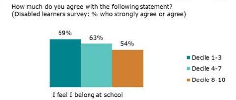 Figure 1:Â Disabled learnersâ feelings of belonging at school: School decile comparison